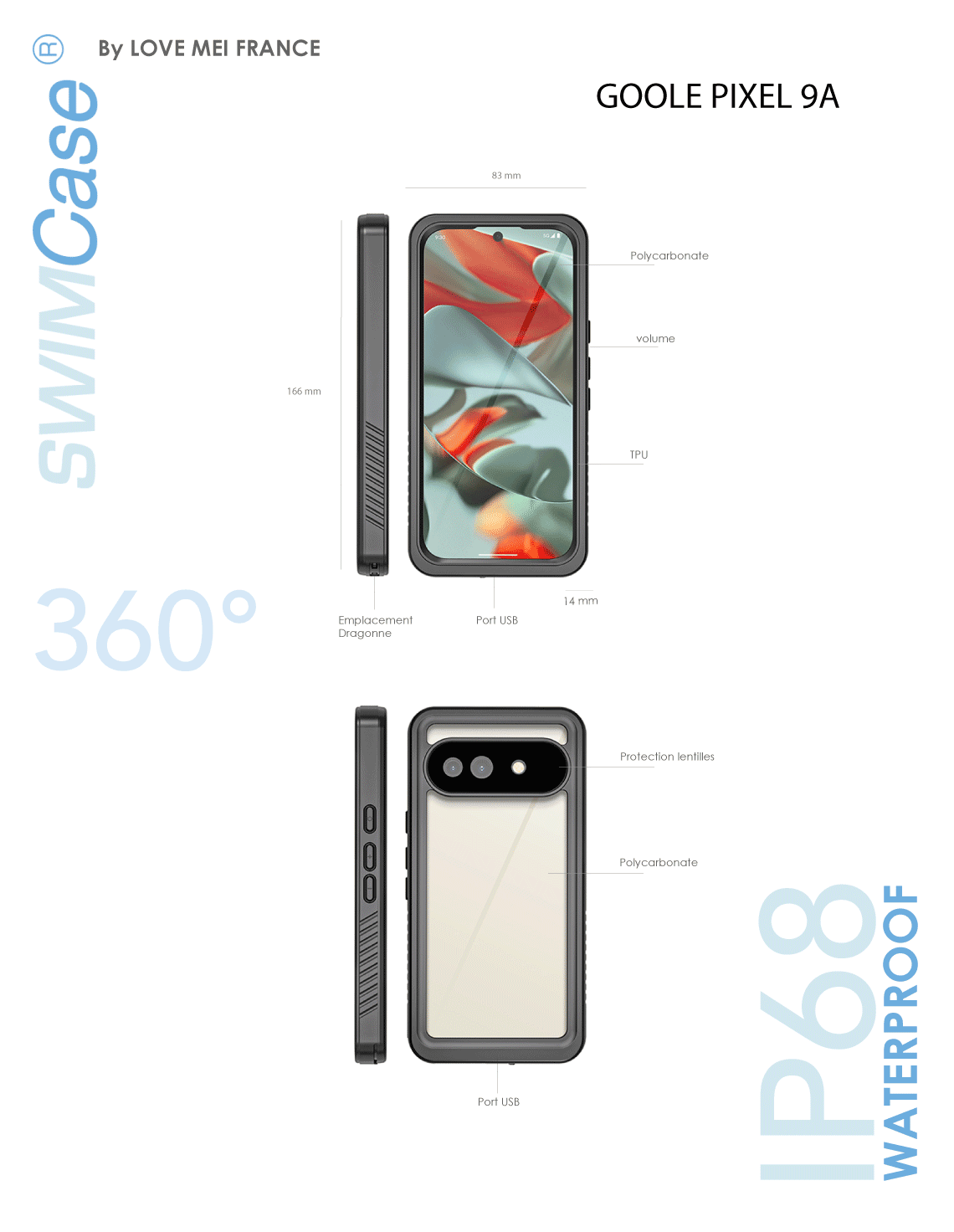 La série Pro LOVE MEI France pour Google Pixel 9A est 100 % étanche et antichoc. Avec notre coque Powerful, votre Google Pixel 9A est prêt pour l’aventure. Grâce à sa protection d'écran, cette coque protège votre Google Pixel 9A de l’eau, des chocs, de la boue, des intempéries. Vous pourrez ainsi faire des photos ou vidéos quelques soient les conditions climatiques. Vivez et partagez vos aventures avec LOVE MEI France.